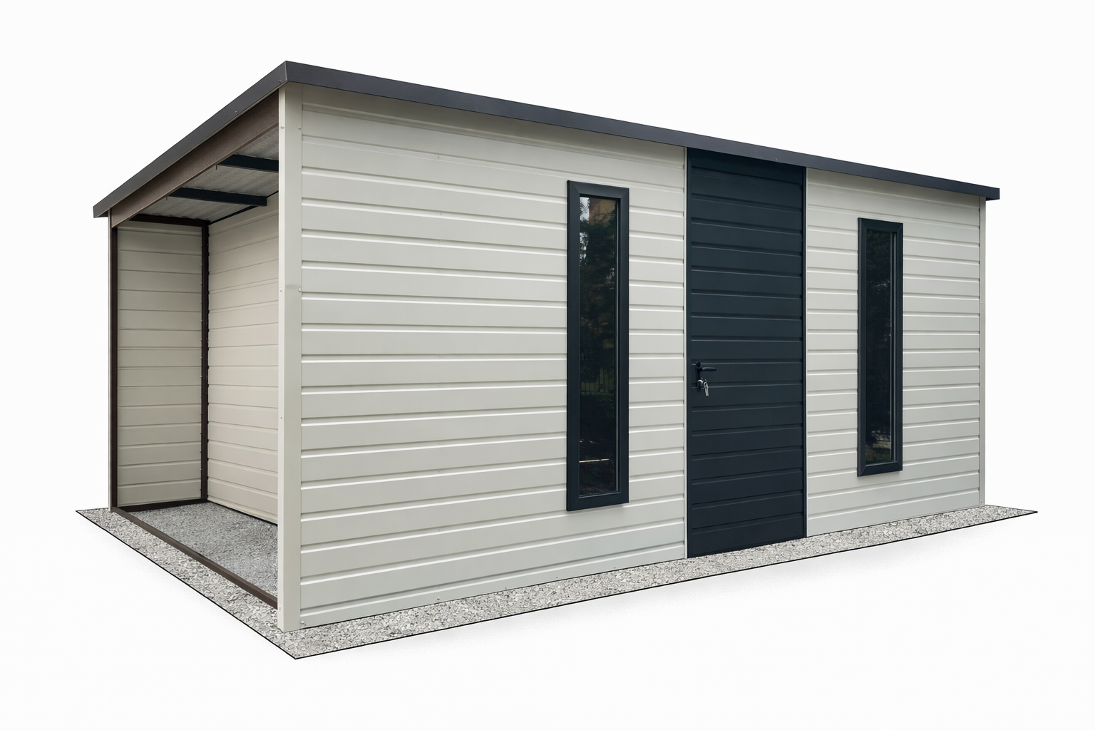 Konstrukce je vyrobena z úhelníků a uzavřených profilů lakovaných základní barvou, na které je pomocí nýtů upevněn trapézový plech.