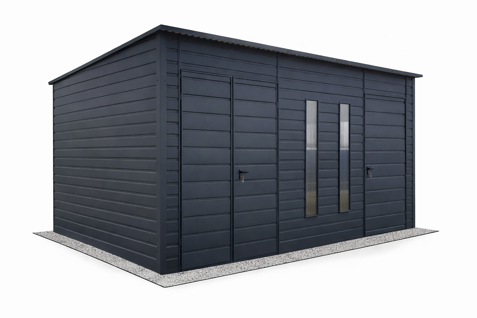 Konstrukce je vyrobena z úhelníků a uzavřených profilů lakovaných základní barvou, na které je pomocí nýtů upevněn trapézový plech.